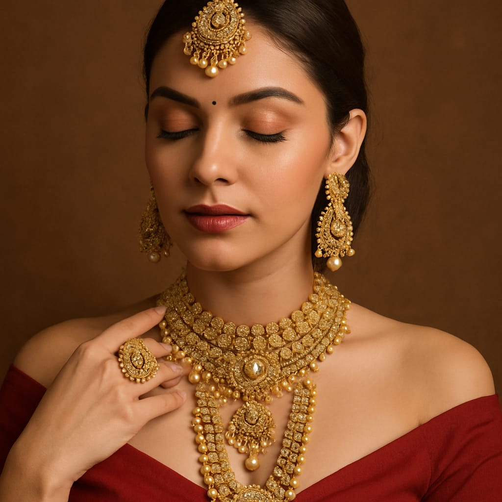 Traditional Matte Gold Finish Necklace Set with Jhumka Earrings for Women